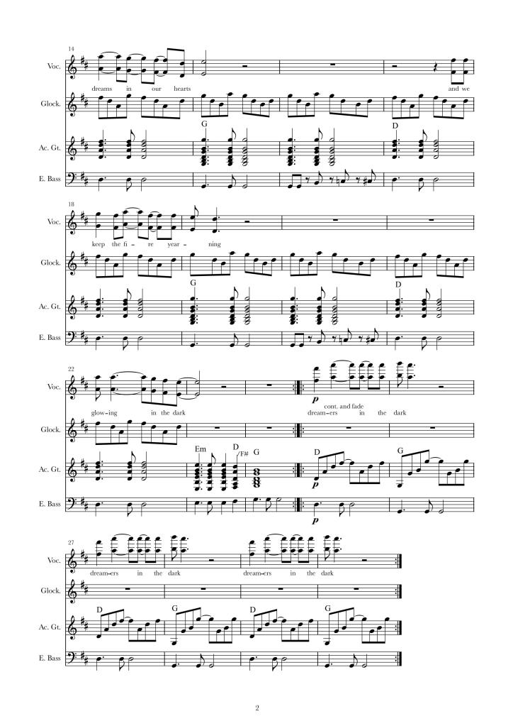 When it is time to make a fire the band are still feeling good. They take out the gear and start doodling on a song while resting their limbs and backs in comfortable positions round the fire. It takes a couple of hours to cement the song into something palatable and it is well after midnight when the band are ready to present it. “Ladies and gentleman,” says Bob. “This is called Glowing in the Dark.” He counts off in four four time.