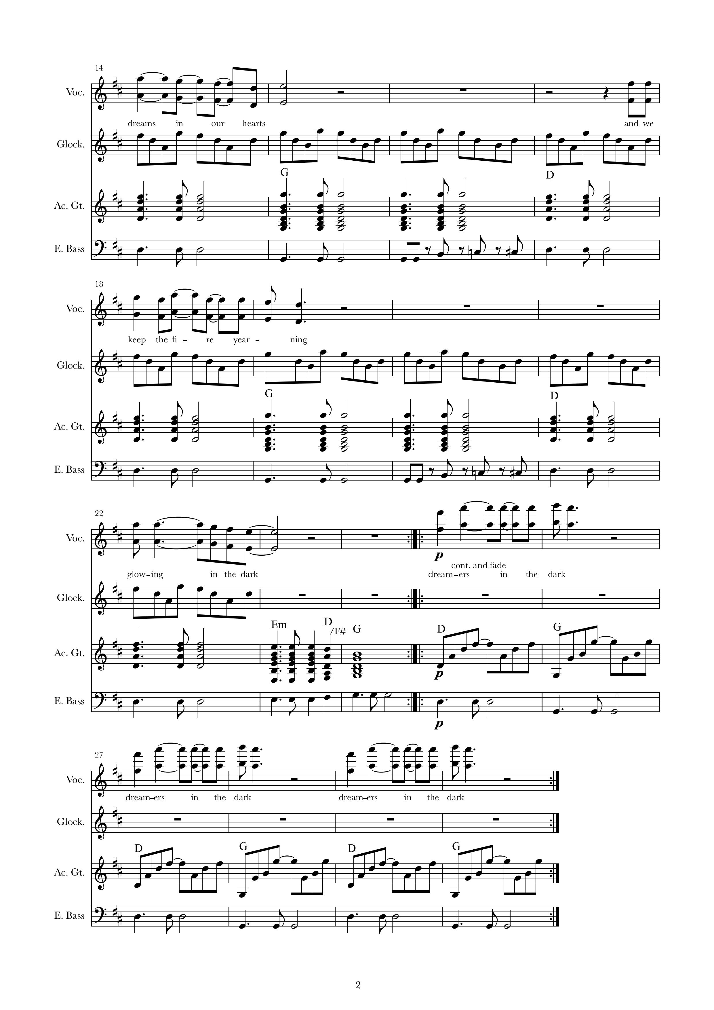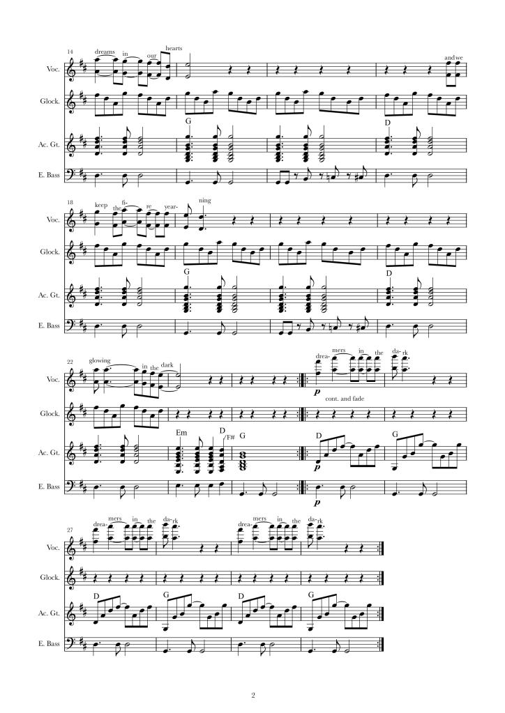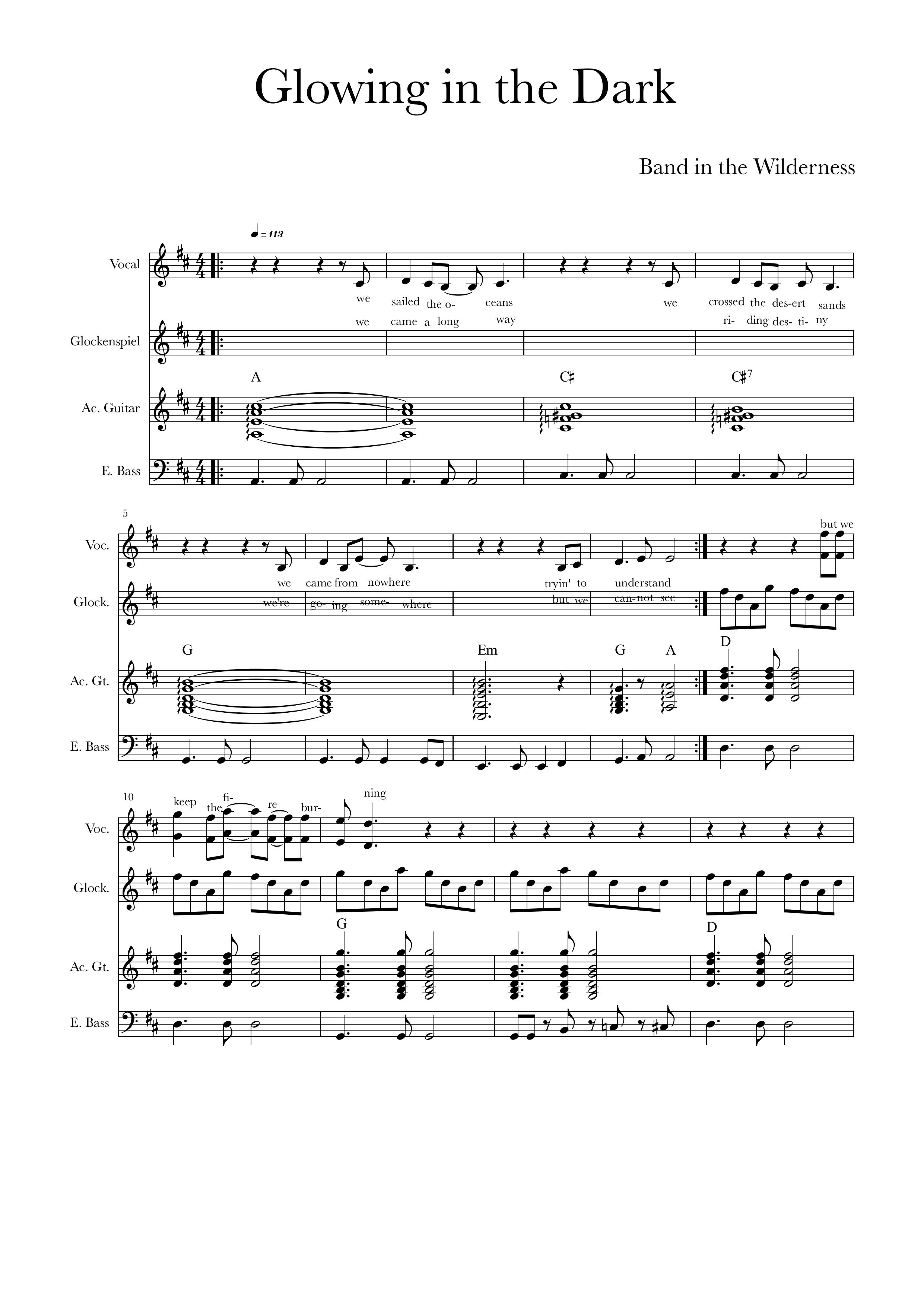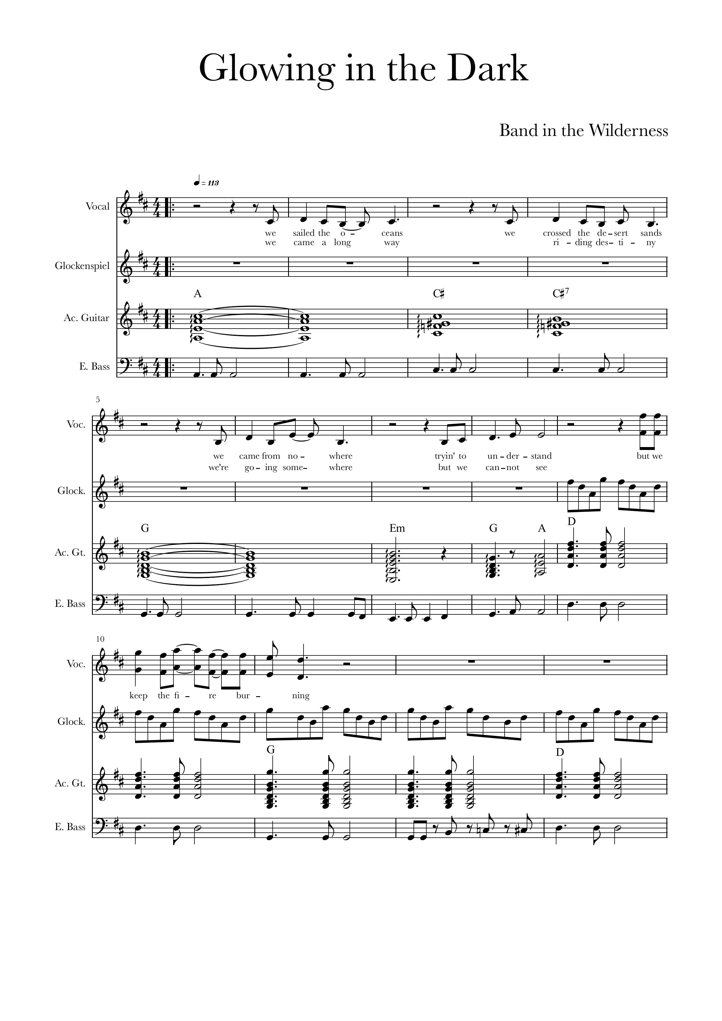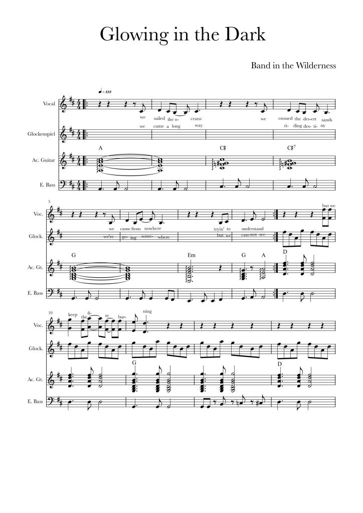 When it is time to make a fire the band are still feeling good. They take out the gear and start doodling on a song while resting their limbs and backs in comfortable positions round the fire. It takes a couple of hours to cement the song into something palatable and it is well after midnight when the band are ready to present it. “Ladies and gentleman,” says Bob. “This is called Glowing in the Dark.” He counts off in four four time.